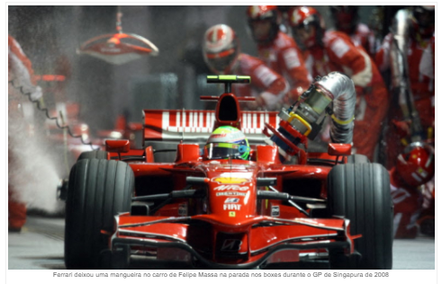 A Justiça da Inglaterra acolheu a ação de Felipe Massa contra a Formula One Management (FOM), a Federação Internacional de Automobilismo (FIA) e Bernie Ecclestone por causa do Singapuragate, caso ocorrido em 2008 em que Nelsinho Piquet bateu propositadamente seu carro para beneficiar o companheiro de equipe, Fernando Alonso, por ordem dos chefes da Renault. “Esta é uma vitória extraordinária, um dia muito importante para mim, para a justiça e para todos os apaixonados pela Fórmula 1”, afirmou Massa, completando.
