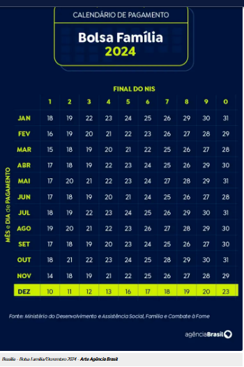 Brasília (DF) 19/11/2024 - Arte calendário Bolsa Família Dezembro 2024